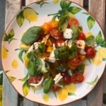 This recipe is the simplest of them all, and can be customized to making it your preference. The simplest form of this recipe would be only 2 ingredients: basil and tomato, and as usual make sure to use the best tomatoes (and do not use beefsteak tomatoes for salad). This simple combination of 2 ingredients combines the earthy and bitter taste of basil with the sweet acidity of tomatoes, in a perfect and simple harmony. The more ingredients you add, the more it will stray away from its roots, but make sure the tomato and basil remain the key ingredients. Olive oil and/or balsamic vinegar can be added for more rich flavour. The final ingredient I love to add is pickled shallots, not onions, shallots. This recipe is obviously inspired by a caprese, but this recipe is seen as a twist and I do not feel it’s respectable to call it a caprese, you can find my recipe for caprese here. Make sure the mozzarella is real Italian mozzarella, and not the fake American mozzarella. Preferably di bufala mozzarella (which It should come in a plastic container or bag with water in it. Unless you are making a big salad, you can use ½ , 1/3 or ¼ of the ball. Adjust the recipe to your liking.